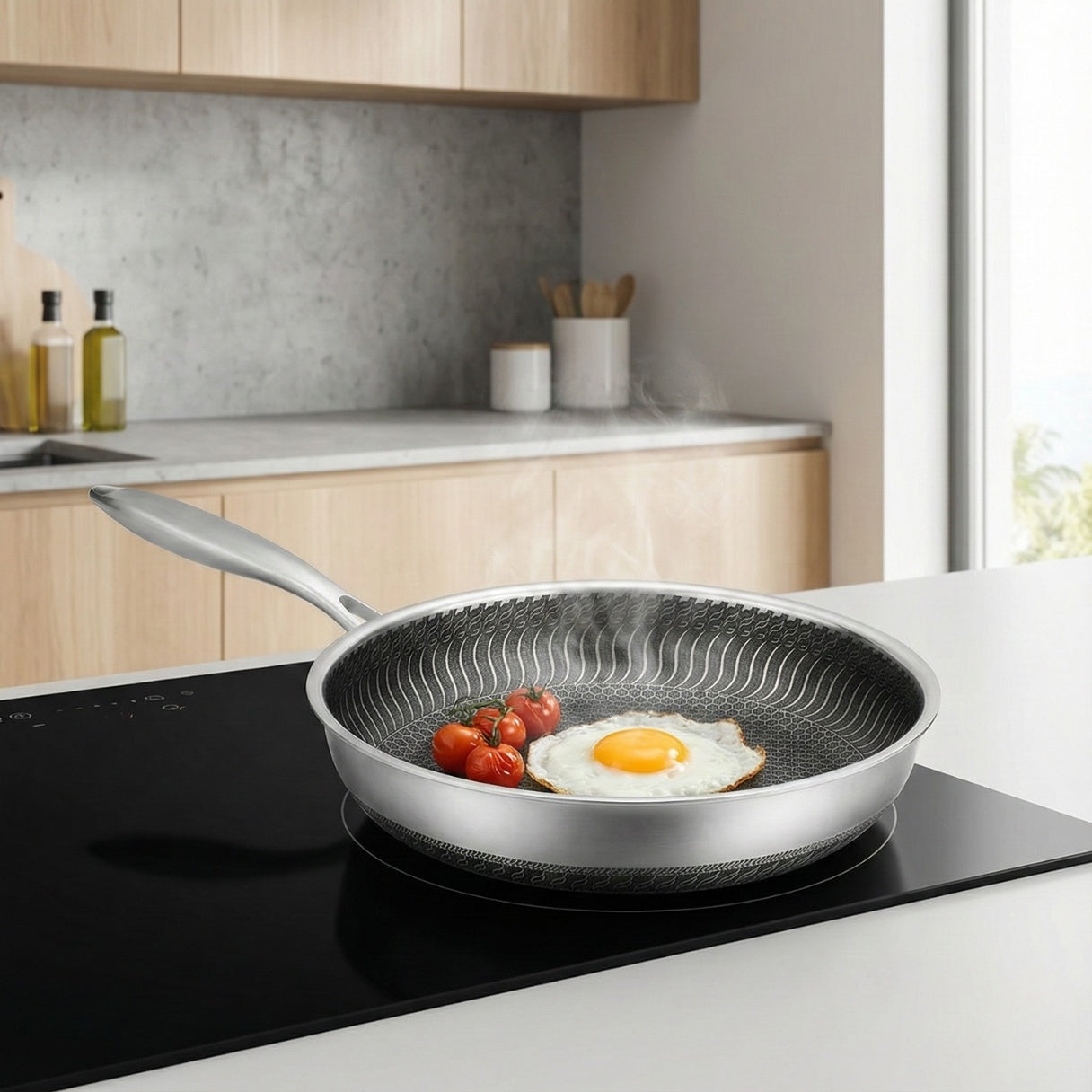 Stekpannan innehåller ingen kemisk beläggning och är tillverkad i rostfritt stål för trygg användning i vardagen.